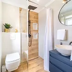 Det finns strykutrustning, strykjärn med strykbräda och luftkonditionering samt TV och plattskärms-TV med satellitkanaler för optimal komfort. Förutom soffa har inredningen ljudisolerade fönster. I badrummet finns även en separat toalett och en dusch. Hårtorkar, badlakan och handdukar erbjuds också.